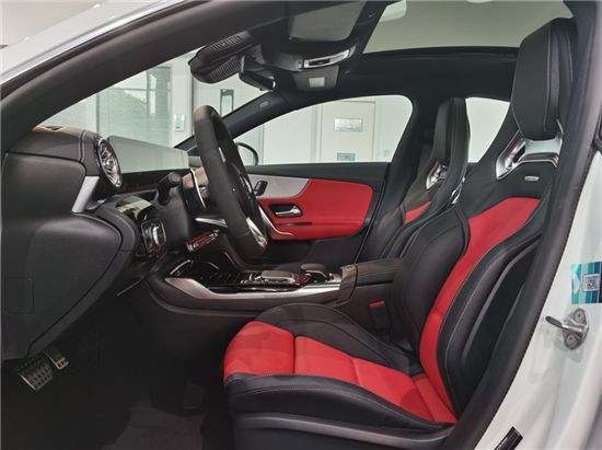 新车整体设计与全新CL .A级基本保持一致, 但细节方面有所不同。车辆内部增加了大量AMG元素,由ARTICO皮革和DINAMICA微纤维材质覆盖的座椅座椅与平底运动方向盘会一直提醒你,你驾驶的是一台性能车。如果是选择AMG CLA 45 S的车主则可以获得更加令人心动的内饰,象征赛道的黄色装饰条充斥于整个内饰,为驾驶者带来更强的视觉冲击感。