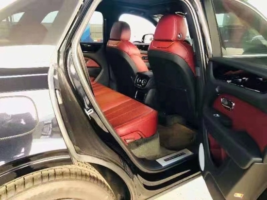 颜色配置:玛瑙黑/板球红详细配置: 五座,镀铬前中网,镀铬进气格栅,全景天窗,座椅刺绣宾利徽章,黑钢琴漆内饰,真皮内顶,真皮加热方向盘,21轮,电尾门,隐私玻璃,行李架。
