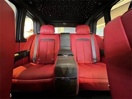 国六中规版劳斯莱斯库里南 (配置|询价)内饰延续了全新幻影 (配置|询价)的设计风格,整体用料依旧一如既往的奢华高贵,中控采用大面积实木打造,配合方向盘上的实木点缀,既复古又豪华。中控屏幕尺寸为10.2英寸的屏幕,轻触车门把手上按键就可以电动关闭,后排控制台与前部是断开的,在狭窄环境停车后排乘客可以选择任意一侧下车。