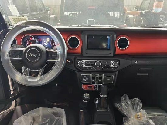 标配:三把差速锁、一键启动、陡坡缓降、红色拖车钩、前稳定杆分离、电加热外后视镜、前雾灯、全尺寸备胎、Rubicon引擎盖贴花、8项手动座椅、2项手动腰部支撑、8扬声器、多功能真皮方向盘、倒车影像、自动大灯(启停, 无钥匙进入 , 8速变速箱)