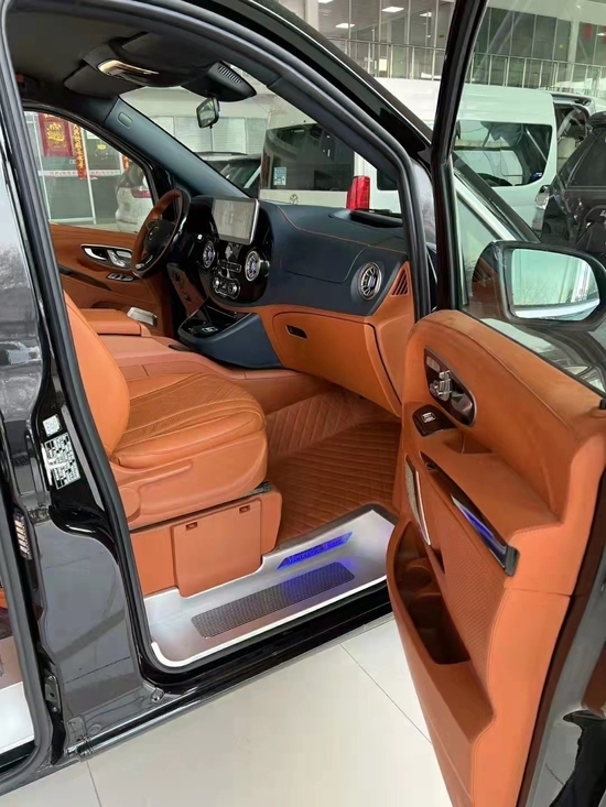奔驰威霆 (配置|询价)改装后才用的是2+2+3的布局方式,也是商务车最流行的布局,驾驶室内,这款车也大量采用了真皮来包覆整个驾驶室,另外我们在驾驶舱内的两个座椅中间搭配上车载冰箱,在酷暑的夏季里可以随时喝上冰凉的冷饮。第二排航空座椅,打孔真皮处置更透气,座椅透风、推拿赐与您更温馨的乘坐感触,更有360度扭转功用;奔驰7座商务车价位 奔驰威霆商务车无论是家庭出游照顾孩子、陪家人谈天,亦或是商务洽谈,都能让您随心所欲。可以说,只要你愿意,你就可以在这张座椅上找到任何你喜欢的姿态。 奔驰威霆改装的车内顶部也全部采用顶级的acantaral翻皮绒进行软包,这种源于跑车中的奢华内饰材料,将超豪华跑车的奢侈与豪华延续至每一个人的生活。