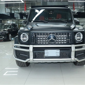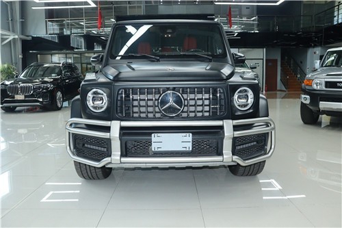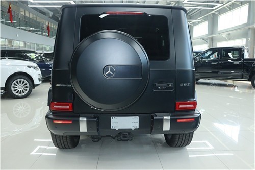 奔驰G63延续了经典且辨识度极高的“方盒子”式外观设计,而高位发动机罩、车门铰链、圆形大灯、转向指示灯、经典的门把手、肌肉感十足的保护饰条(其高光黑色部件带有银色AMG标记)、后门上的不锈钢罩外露备胎和立体三叉星徽等元素得到保留。它的前部设计包括AMG特有的散热器格栅和带有大型侧部进气口和哑光铱银色饰件的AMG保险杠。大灯、转向指示灯和尾灯均为LED光源。