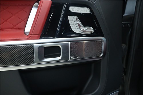 22款奔驰G63还标配全数字化宽屏驾驶舱,它的虚拟仪表直接出现在驾驶员的视野中,而中央显示器则位于中控台上方。两块12.3英寸屏幕在视觉上借助整块的玻璃外屏将二者融为一体。驾驶员能在“经典”、“运动”和“时尚”这三种不同视图风格中任选一种,并随意调用所需信息