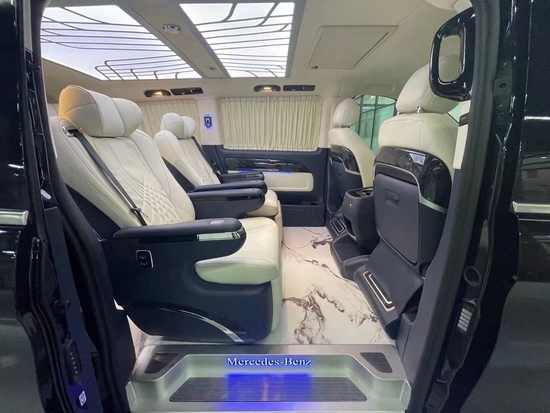 此款7座大商务车奔驰威霆并未采用全隔断的设计,这让后舱和驾驶室的联系变得更加的密切,后舱二座座椅采用的埃尔法原装进口座椅,V:FangcheZF自带通风加热,电动按摩等多种功能,而且自带脚托能给后舱乘客带来最好的乘坐体验。后排三座采用的是电动三连坐沙发座椅,支持电动一键平躺,座椅变大床只需要一秒。后舱为了照顾到没有像全隔断设计那样较好的私密性,威霆设计了电动遮光窗帘,让整个空间能够不被外界轻易看到。