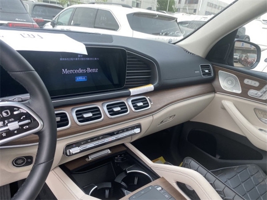 22款奔驰GLS450搭载了奔驰最新的MBUX人机交互系统,环抱式中控台将运动与豪华做了很好的兼顾,中控台采用高档软质材料包裹,同时还有缝线工艺,以及大面积木纹饰板加以点缀。三幅式平底方向盘动感十足,头顶一个全景天窗提供车内采光,带来舒适的驾驶体验。全景影像和抬显显示效果清晰,方便驾驶者的安全驾驶。