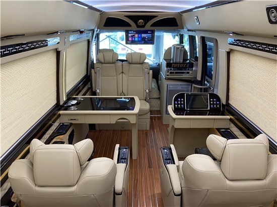 丰田考斯特11座商务车在内饰的改装上追求卓越与极致,致力于打造最豪华最实用的商务用车。丰田考斯特改装,在座位的布局上采用豪华的真皮座椅,丰田考斯特11座改装豪华商务车采用的是豪华版的真皮座椅。而且座椅的装饰上可以有自动调节座椅位置靠背角度以及电动脚踏等设置。丰田考斯特改装是依据个人的需求完成的,所以我们可以根据自己的需求添加自动加热,通风的装置。满足我们在各种情况下的旅途需要。