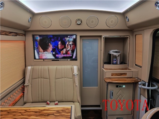 丰田考斯特7座它除了功能丰富外,还可以支持苹果机的CarPlay以及安卓手机的CarLife功能。在移动智能设备普及化的今天,支持这两项互联功能远比优化自身系统更加亲近消费者。同同【丰田考斯特商务房车柯斯达内饰价格】丰田考斯特改装商务车注重的还是车的实用性的设置。我们有的办公桌方便领导批改文件,假如是在晚上的话我们还设置有灯。双人汇报席,固定席位。车厢内冰箱和酒柜装饰,这些装置与司机驾驶席后的显示屏隔断,将车厢与驾驶席隔开。我们可以在隔断的中间增加电动门,方便来回的交流与沟通。在驾驶舱与乘客车厢中间增加隔断不仅仅是为了车内构造的美观。丰田考斯特是机关和商务活动中经常出现和信赖的忠实伙伴,丰田考斯特是丰田公司生产的小型巴士。