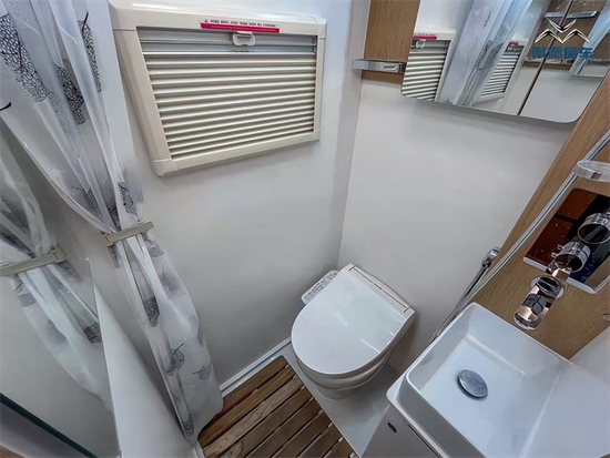 卫生间部分在全新E途pro max上依然很熟悉,酒店式卫生间,匹配智能马桶、MAXX换气扇、顶部储物柜、侧窗、独立淋浴系统,尤其是带有固定的洗漱台和洗脸盆,而这一切设备也是当前C型房车中算的上最豪华的配置了。水路系统方面,全新E途pro max配备双水箱,一个为外置160升净水箱,另外一个是内置170升净水箱。水路系统方面还带有低温自动排水功能、配备有进口驻车燃油加热器(水暖)。好了本款戴德全新E途PROMAX进口依维柯房车小峰哥就同大家介绍到这里。阅览世间美好,带您跨越山河,品味人间烟火,给您一个移动的家 -我是小峰哥