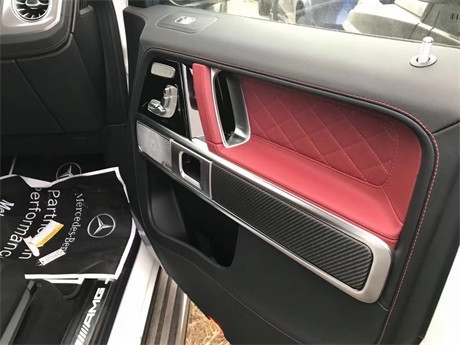 21款奔驰G63内饰方面,奔驰的设计绝对可以用惊艳来形容,无论是经典车型还是超豪华车型甚至是入门级的豪华车上,奔驰的内饰都会让你眼前一亮,当然了这也是奔驰的一个特色。所以这部全新的G63在内饰的表现上也是情理之中的,但是细节上还是有些小小的意外。这种感觉是打开车门的瞬间就能够感受到的。首先仪表和中控屏依旧是采用了同一款液晶屏显示,第一感觉就是科技感爆表。而其他方面例如方向盘,空调出风口,挡杆等等的设计充满设计感。