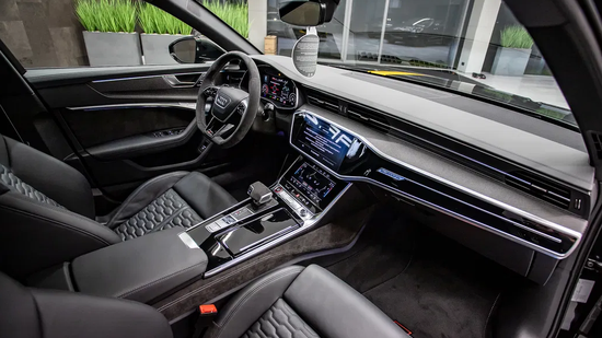 转到内饰,处处可见RS字母标识,车内保留了奥迪RS6 Avant一贯的质感,高档麂皮绒和真皮材质的使用,豪华感油然而生。中控台一如既往的简单干练却科技感充足,还是奥迪RS6 Avant那个熟悉的味道。