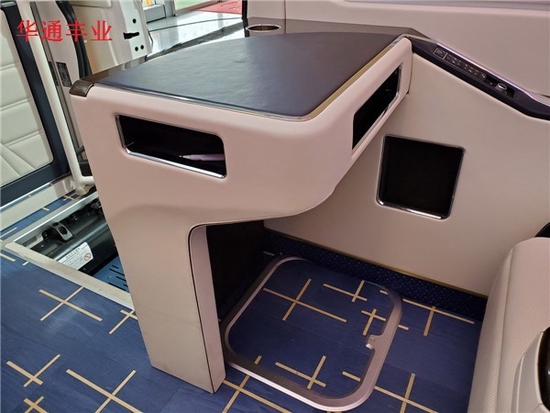丰田考斯特豪华高档办公桌以桃木及真皮为材料,打造最舒适高端使用的办公环境。360度可选装首长席,双人汇报席,方便旅途中的您进行紧急会议,舒适的座椅,实用的办公设置,贴心的电源以及显示屏设置,丰田考斯特高级改装于细节之处展现尊贵风格,在平凡之体现贴心设计。