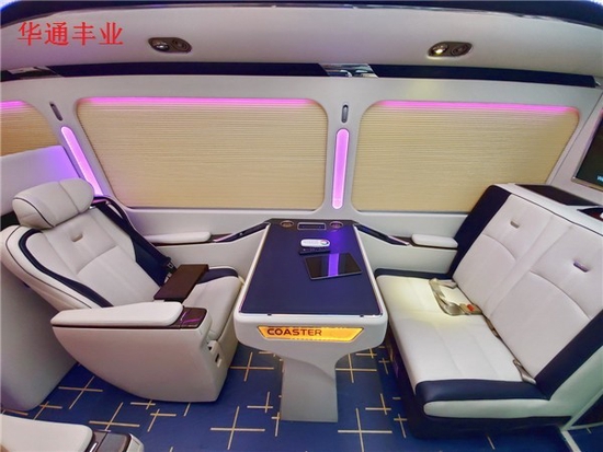 丰田考斯特(柯斯达),政府事业单位接待用车的典范! 特点是简单大方。而且宽大的空间及豪华的航空座椅保证了乘客的舒适性!司机操控台美观大方一改以往设计方面的缺陷,整个操控面板采用桃木内饰的设计,并配有导航影音系统!驾驶座椅采用了加宽加大的设计。