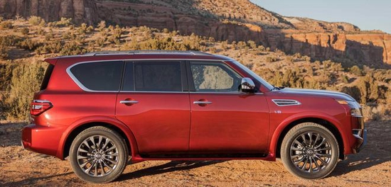 侧面造型方正稳重,平直的腰线将整车的尺寸以及气势很好的表达出来联系电话:18812637416刘经理 (同号微信)。车身尺寸方面,美版途乐长宽高分别为5165/1995/1940mm,轴距达到3075mm,加上273mm的离地间隙,看上去十分高大威猛。在轮毂尺寸方面,新款ARMADA将会提供20英寸以及22英寸的多个款式可选。