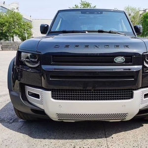 2022款路虎卫士新车车头依旧使用了方方正正的设计元素,方形前灯组内有半圆形光源,前进气格栅的造型设计十分简洁并带有经典的“LAND ROVER”绿色logo,前机盖边缘的“DEFENDER”车型标志也得到了保留,前保险杠下部带有大面积的银色护板,整个前脸的层次感分明,也显得非常厚重。