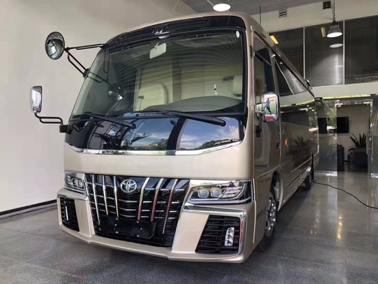 丰田考斯特改装商务车是丰田考斯特商务车改装系列中最手欢迎的一款,因为其内饰是的设计较为舒适也是较为宽敞而所处的价格的定位也是能够被大多数客户所接受的一款。丰田考斯特13座商务车从外观的设计上来说豪华版米黄金色的车身设计是丰田考斯特改装商务车的一个独特之处米黄金色的车身设计以及彩色的中线搭配,以及车头车尾处镀铬的丰田标志和镀铬的防蹭条的设计,丰田考斯特改装商务车在外观的设计低调之中又不失端庄大气。