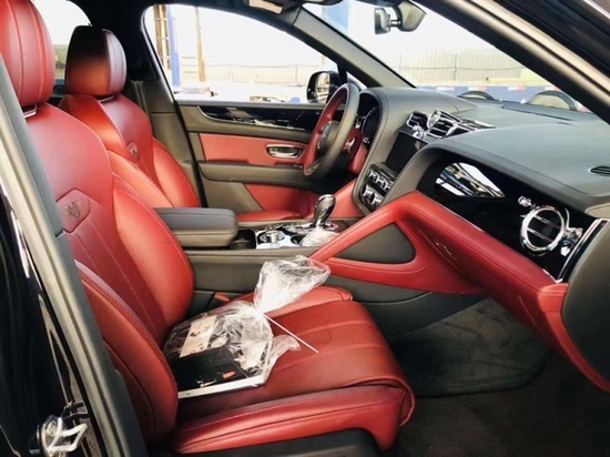 颜色配置:玛瑙黑/板球红详细配置: 五座,镀铬前中网,镀铬进气格栅,全景天窗,座椅刺绣宾利徽章,黑钢琴漆内饰,真皮内顶,真皮加热方向盘,21轮,电尾门,隐私玻璃,行李架。