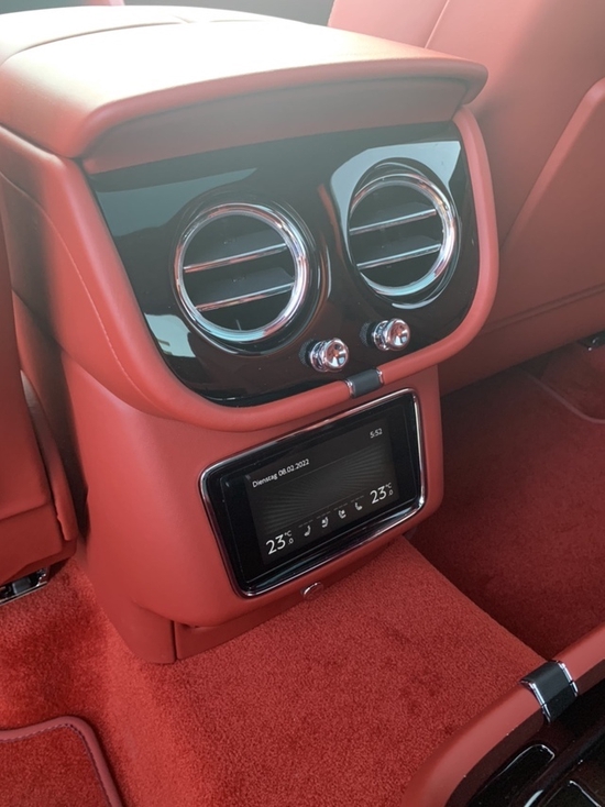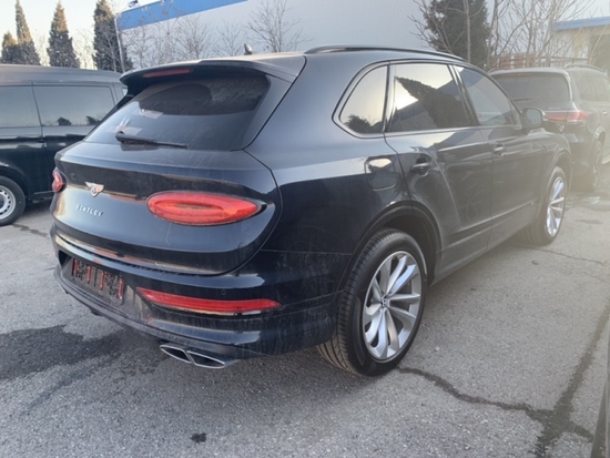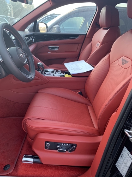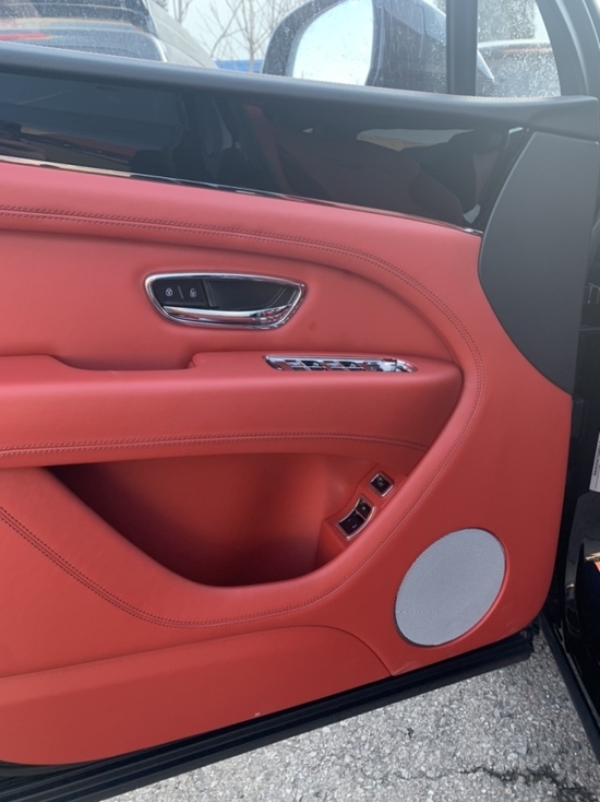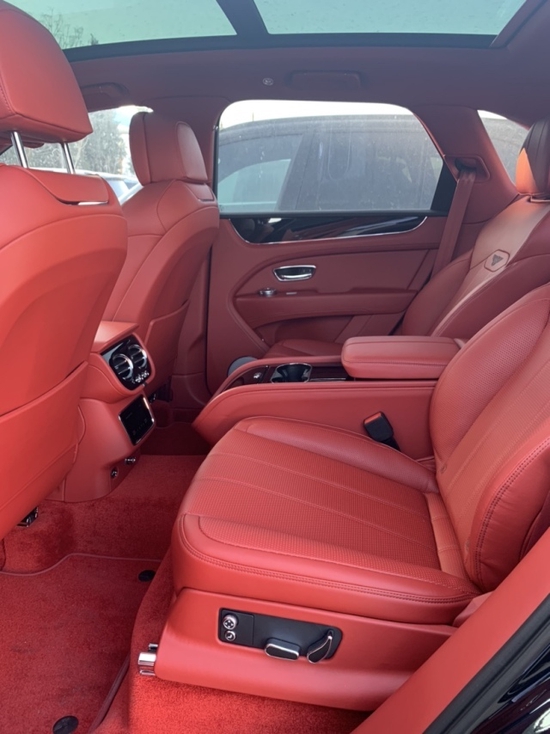 外饰 蓝黑 内饰马刺红带后排中间扶手的4座舒适包, 旅行包、添越BLACKLINE 套件、 双色金属漆、颜色包、 钢琴漆面板、对比缝线、隐私玻璃、标准红色卡钳、 LED迎宾灯、 羊绒脚垫、宾利刺绣标、吸烟包