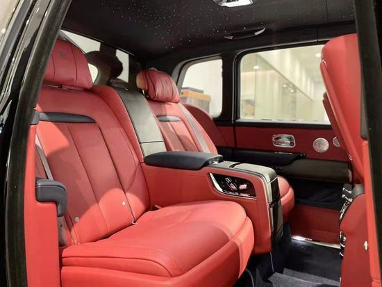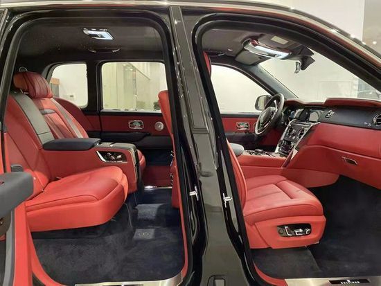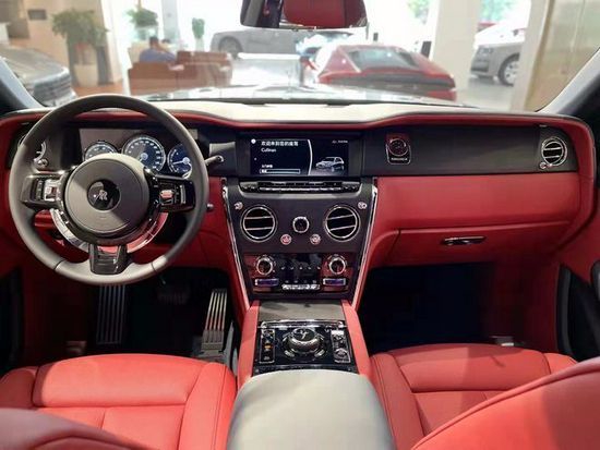 劳斯莱斯库里南 (配置|询价)内饰延续了全新幻影 (配置|询价)的设计风格,整体用料依旧一如既往的奢华高贵,中控采用大面积实木打造,配合方向盘上的实木点缀,既复古又豪华。中控屏幕尺寸为10.2英寸的屏幕,轻触车门把手上按键就可以电动关闭,后排控制台与前部是断开的,在狭窄环境停车后排乘客可以选择任意一侧下车。