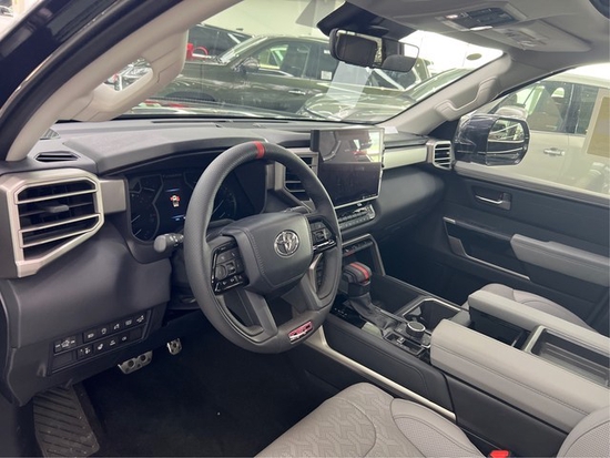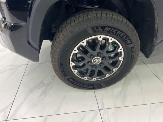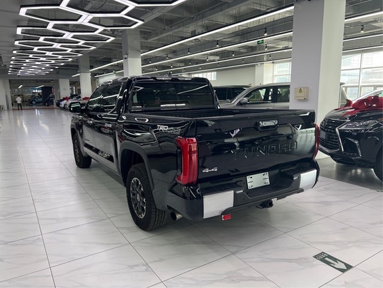 2022款丰田坦途直接提供了有棱有角的车头前脸,大尺寸蜂窝状进气中网搭配镀铬边框处理,两侧泪痕造型LED矩阵大灯视觉效果并不输给福特猛禽 (配置|询价)。车身侧面看也有了方盒子外观效果,甚至还要熏黑车窗立柱营造出悬浮车顶。黑武士改装风格轮毂搭配原厂越野轮胎,素车就能够实现不错的越野通过性。