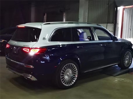 2021款奔驰迈巴赫GLS600车尾方面,两条贯穿式的镀铬饰条搭配两段式的LED尾灯增加车尾的层次感。车尾的双边共四出的矩形排气管装饰件,排气管口被分隔成上下两层,同时,镀铬后护板展现其性能车特质