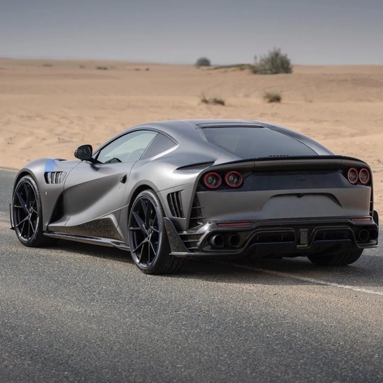 尾部的改变同样不简单,MANSORY迈莎锐用碳纤维后包围件拓宽了整个812车尾,不论远观还是近看都显得厚重而又富有“内涵”。此外,后保险杠带出气格栅、后面板、后置扩散器、后车灯盖等部位也无一例外使用锻造花碳包覆升级。
