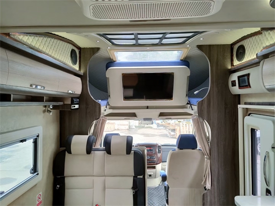 车内采用EO级房车专用家具板,游艇地板革(防水、防滑、防火、耐磨)亚克力材质房车专用窗,整车氛围灯,让人身心愉悦。
