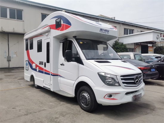 这款奔驰房车基于奔驰斯宾特324底盘改装,搭载一款3.5升自然吸气汽油发动机,匹配5AT手自一体变速箱,最大功率258马力。这款车的车身以白色为主色调,搭配红和蓝色拉花。大额头用线条装饰,中间镶嵌有厂家的LOGO,整车颇具运动感和时尚感。