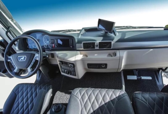 二手德国MAN。驾驶室和生活区是不贯通设计,靠近驾驶室位置是对座式卡座沙发,车厢中部是卫生间和厨房,车尾则是一张双人床,可通过后拓展舱有效增加床位的使用面积。该车标配有330L净水箱、25L热水箱双水路系统,500Ah锂电池、2.8kW意大利柴油发电机、5kW的充电逆变一体机、德国特鲁马冷暖一体空调、德国埃贝赫12kW水暖加热器和4.8kW暖风机。