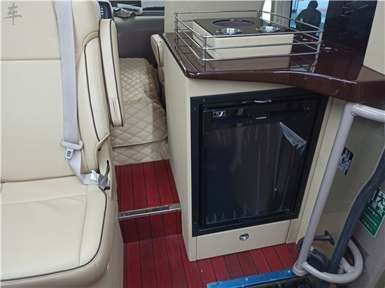 在乘客上车门的右方,我们安装冰箱设备,可以存放饮料水果等。在接待来宾之时,为远道而来的人送上贴心的饮料必然可以个人以较好的印象,能够充分体现出我们对于别人的尊重。而作为商务出行用车,这款车的特点就是舒适而不张扬,高贵而不奢靡。在商务往来的是市场上,可能更体现出尊重的感觉,车内的改装风格更可以体现出我们对于内涵的注重。由此得到别人的认可,创造更多的机会。
