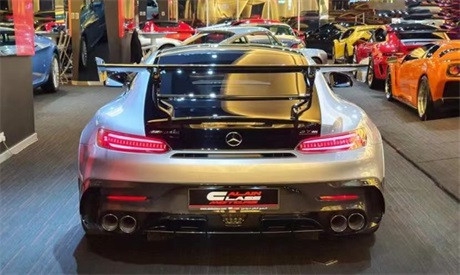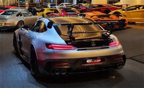 2022款奔驰AMG GT (配置|询价)车头部分只有AMG做的如此霸气与协调外观方面,该车整体线条延续了奔驰家族优雅的设计风格,极具攻击性的竖条幅格栅和夸张的前保险杠让人过目不忘尾部方面,该车加入了后扰流板,能够提供更好的下压力车尾底部加入了更多的扰流组件,并采用了双出排气布局。