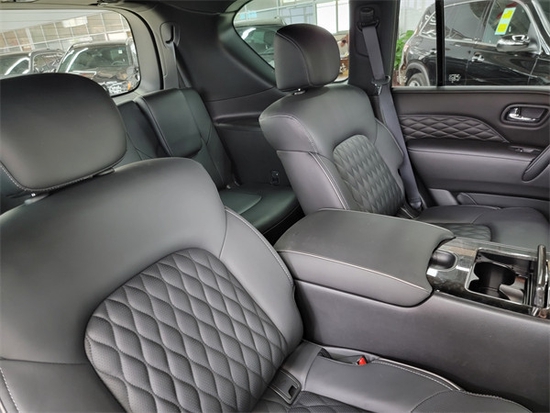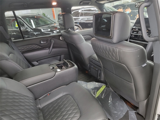 2022款英菲尼迪QX80座椅布局为三排,真皮座椅,前排座椅带加热器,第二排船长座椅为标准配置。为了支持驾驶员,采用了新开发的无线智能手机充电器以及 Bose 的高级音响系统和“智能巡航控制”。