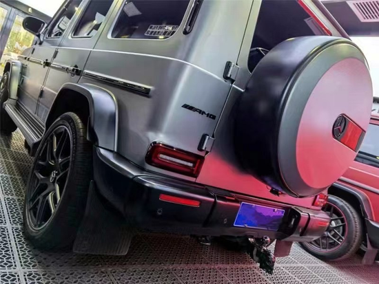 外观上,全新G63采用了复古造型设计,前脸配有直瀑式进气格栅,两侧为经典的圆形LED头灯组,辨识度极高。侧面配有大尺寸铝合金轮毂,内部搭配红色AMG制动卡钳。此外,新车的排气依旧采用侧出布局。车尾配备外挂式全尺寸备胎,进一步凸显了新车的硬派风格。21款奔驰G (配置|询价)63(配置|询价)高配,原厂哑光灰选装漆,14000公里,21年5月上牌,2021款选配哑光铂金灰油漆拼色+22寸轮毂+暗夜套件,碳纤维内饰,机盖,前唇,门拉手,发光出风口,前保险杠,国6全国落户