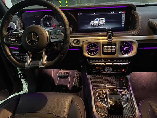2021款梅赛德斯-AMG G (配置|询价) 63在G 500基础上增加了AMG外观套件,内饰方面延续了老款车型双12.3英寸联屏设计,并加入碳纤维饰板,进一步提升了整车的运动气息。动力方面,AMG G 63搭载4.0T V8发动机,最大功率为430kW,峰值扭矩为850N·m,传动系统匹配9AT变速箱,配备带有“三把锁”的全时四驱系统,百公里加速仅需4.5秒。
