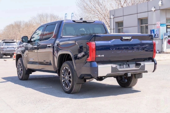 丰田坦途直接提供了有棱有角的车头前脸,大尺寸蜂窝状进气中网搭配镀铬边框处理,两侧泪痕造型LED矩阵大灯视觉效果并不输给福特猛禽 (配置|询价)。车身侧面看也有了方盒子外观效果,甚至还要熏黑车窗立柱营造出悬浮车顶。黑武士改装风格轮毂搭配原厂越野轮胎,素车就能够实现不错的越野通过性。