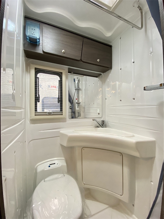 整体式吸塑卫生间,各项配置很齐全,淋浴花洒、热水器、洗手池、储物柜以及抽拉盒式马桶、集成式卫浴系统一应俱全,黑水箱18L。电路方面,选用集成配电面板,配备国电赛思3000W充电逆变一体机、防水等级IP67级的824AH磷酸铁锂电池、如果新能源500W单晶硅太阳能硬板等。水路方面,净水箱180升,灰水箱50升。好了本款亚特尊领ST依维柯双拓展房车小峰哥就同大家介绍到这里。阅览世间美好,带您跨越山河,品味人间烟火,给您一个移动的家 -我是小峰哥