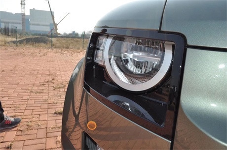 卫士的前脸采用路虎家族车型的设计语言,简洁的中网内填充的黑色格栅条和路虎的车标,显得很醒目,有着不错的辨识度。引擎盖两侧还配备了网格状的面板,让这款车有着与众不同的档次感。