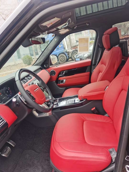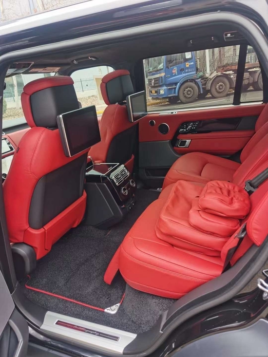 21款路虎创世加长:黑/红 配置:22刀锋轮、滑动全景天窗、黑钢琴漆内饰、桃木方向盘、隐私玻璃、冰箱、抬头显示、Meridian音响、10.2寸后娱、300PD商务座椅(前后座椅加热通风、按摩、带腿托)、