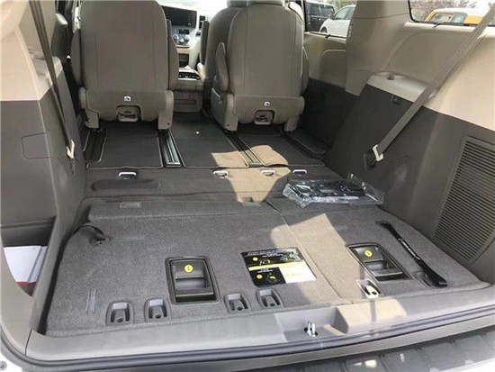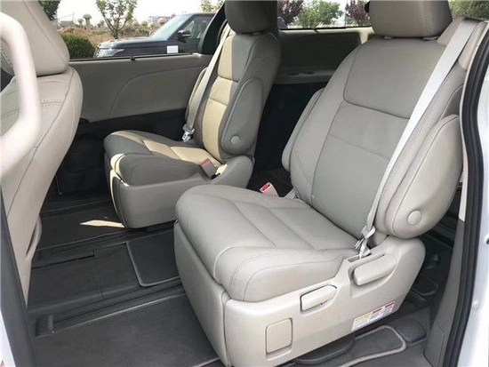 内饰颜色上顶配版本为棕色真皮座椅,L、LE、XLE版本都以灰色真皮座椅为主,其座椅包裹性很好,第二排XLE版本带有腿拖,放倒后和第三排的座椅,结合腿部支撑,说是两张摇篮床也不为过!