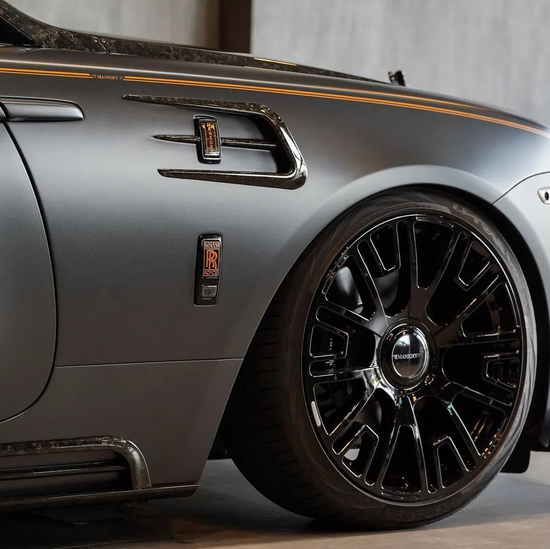 侧身部位MANSORY迈莎锐尽可能保留了劳斯莱斯原厂精简干练风,但作为无碳不欢的用碳专家,MANSORY依旧对翼子板、侧裙、A柱覆盖装饰件、后视镜罩、可折叠车顶棚、出气口分流器等部位进行了“碳化”处理。令人意外的是,就连分布在曜影前翼子板两侧的雕刻徽章,也全都用带底漆的可视碳纤维材料作了更替。在笔者眼里,不论多不起眼的细节也都会被MANSORY精准“拿捏”,足以烘托“欧洲豪车定制大师”的品牌魅力!