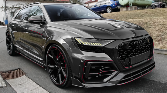 在MANSORY迈莎锐的加持下,奥迪RSQ8带上战斗气息十足的运动套组,引擎爱上醒目的进气口在碳纤维的作用下气焰嚣张,标志性多边形格栅视觉效果更为丰富,前脸大部分区域都被改装“黄金”碳纤维重新打造,而在前唇在导气槽还有中网部分我们看见了热情洋溢的红色线条,红与黑灰之间的搭配和谐经典,让整车更加凶猛。