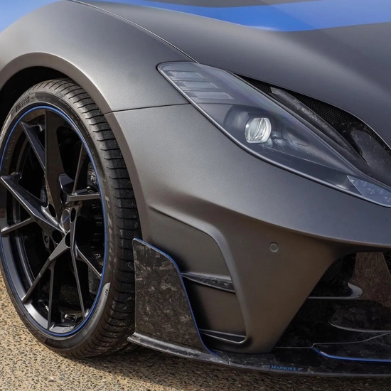 MANSORY 812 Stallone基于法拉利812定制而来。原厂亮灰金属漆被MANSORY迈莎锐大胆涂装成了更为柔和高雅的哑光灰,搭配横贯车头的一抹湛蓝色赛车条纹,一股强烈的热血赛道气息扑面来袭。不过这还不是重点,了解MANSORY迈莎锐这个改装品牌的人都知道,近乎每一次豪车“高定”业务,MANSORY都会引入大量严苛考究的鼎臻原料。“重塑”车辆外观主要靠的是航空级碳纤维,而这次针对法拉利812,MANSORY迈莎锐更是将T200普通碳直接升级成了视觉观感更好,工艺标准更高的特殊锻造花碳。