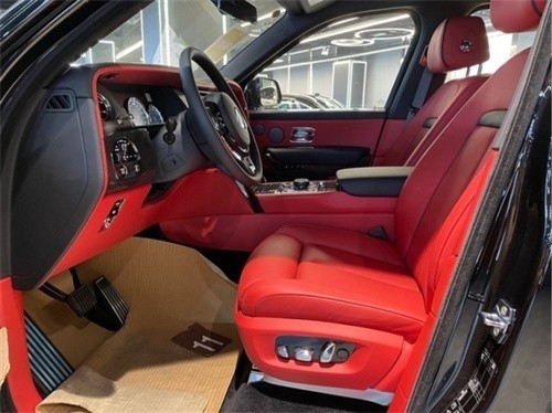 劳斯莱斯库里南内饰遵循了劳斯莱斯一贯的设计风格,造型经典复古但不失科技感,大量实木饰板的采用,提升了内饰的档次感。而大面积真皮包裹的设计,则成功的营造出奢华舒适的内饰氛围。仪表盘的设计较为古朴,内部指针清晰可见,外圈还配备有劳斯莱斯珠宝般的装饰环。方向盘沿用了经典的三辐式造型,但是整体设计更加小巧、厚实,并且内部包裹有可加热的柔软材质。