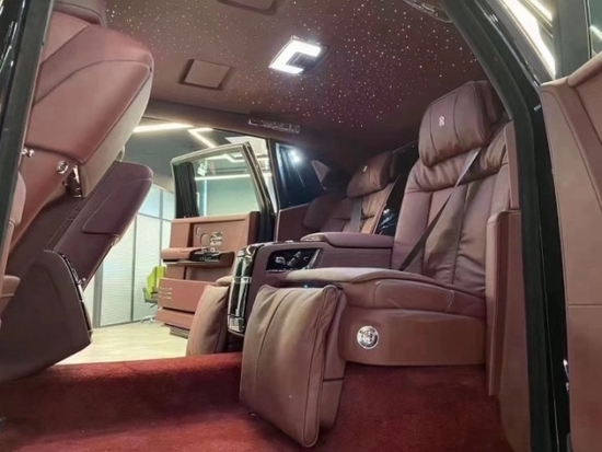 劳斯莱斯幻影加长版是由60位技艺精湛的工匠在劳斯莱斯之家,将高超技术融入了每辆幻影加长版车中所有的细节都至关重要,5层车身油漆、经过匹配的木饰面板以及手工缝制的真皮无一例当无处不在的灵感邂逅巧夺天工的技艺,高级定制的绚丽之美便翩然绽放缤纷美好时节,浪漫之旅由此开启来到车内,最大的特色就是它首次采用一个叫做艺境珍藏画廊的设计,在这块儿钢化玻璃的后面有很大的空间,可以让车主选择放上自己喜欢的一些字画艺术品等等。