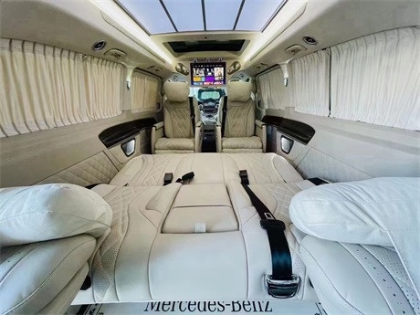 奔驰联手国际知名改装厂克蒂推出了奔驰VS880商务房车,为高端商务车再添一力作。奔驰VS880商务房车以奔驰V级 (配置|询价)为原型,在此基础上进行内饰以及外观的全新升级。今天就为大家带来这款车,新款国六奔驰VS880商务房车将时尚的潮流完全应用到汽车定制设计中。这台奔驰VS880商务房车采用加高顶设计全车尺寸达到了5370mm*1928mm*2090mm。而整车的外观采用高端黑色高亮外观保护膜,更显高档质感。