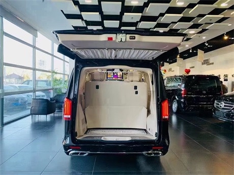 值得一提的是为了方便城市中行车,为大家升级了流媒体后视镜,可显示车身周边环境情况,保证行车安全。我们再来看奔驰VS880商务房车后舱,采用前后无隔断的设计,空间性更好,在使用用途上无论商用还是家用都完美胜任。内饰方面,车窗配置深褐色羊毛遮光窗帘,还有和前舱一样采用nappa真皮的独立智能座椅。两侧橘色和幽兰色氛围灯让略显单调的贵宾室多了几份跳脱。