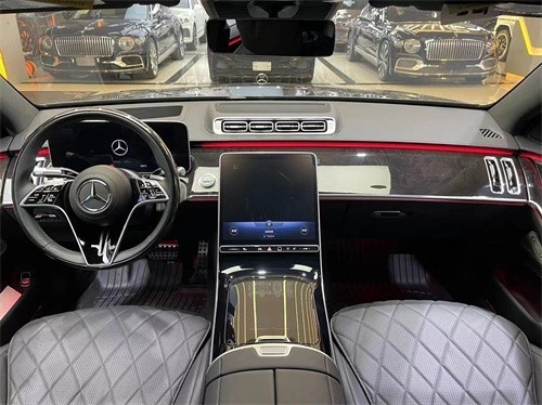 奔驰S580采用了三幅式的全新造型的方向盘,新车的中控台上采用了钢琴烤漆面板装饰,上面采用了多条横向的白色装饰条点缀。采用了悬浮式的纵置大屏,液晶仪表采用了悬浮式的风格。第二排座椅,新车的第二排采用了两个独立的豪华座椅,中间配备了独立的多媒体系统,新车的后排配备了无线充电、冰箱,后方的地台上采用了钢琴烤漆的面板。新车的后排座椅非常豪华,上面采用了菱形的纹路,门板上也采用了非常精致的设计。