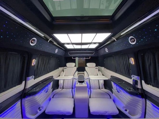 奔驰迈巴赫vs680商务车后排的星空顶,氛围灯让整车充满了奇幻浪漫的气息,星空顶还可以切换各种颜色,内饰用料及做工达到顶尖豪车水准,集舒适、配置、娱乐于一体,旨在为尊贵的车主打造高端、高品质的接待与移动办公出行。