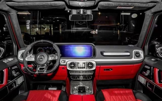 外观设计首先在外观方面,这款到店的车型,整体外观非常的吸引人,给人眼前一亮的感觉,身着一身亮眼的石应红车漆,这要是行驶在大街上,回头率肯定爆棚,前脸此案有那个的是直瀑式的进气格栅,内部镶嵌者醒目的黑色logo,以彰显身份,再搭配左右两侧采用复古造型设计的圆形的大灯,辨识度非常的高。来到整车的车身侧面,依旧是四方形造型设计,下方配备的是22英寸AMG专属的交叉轮辐锻造轮毂,而且内部的卡钳进行了喷红处理,排气管采用的是双边四出的布局设计,在车身尺寸方面,长宽高分别为4870毫米,1984毫米,1980毫米,轴距为2890毫米,定位中大型SUV。