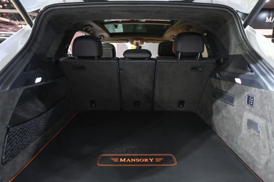 车身侧面肌肉感十足的凌厉线条令其显现出前所未有的雕塑感,底盘较原厂有所降低,让它看起来“性能范儿”满满。此外,诸如:发动机盖带进气口、前唇、前/后保险杠、侧裙、扰流、后视镜罩、尾翼、后置扩散器等多个部位也都采用“轻盈、坚固、抗拉伸”的黑线碳纤维空气动力学组件升级。MANSORY独家设计的23寸Y5轻型运动轮毂配315/25 R23性能轮胎,跑车特有的运动豪情跃然于表。