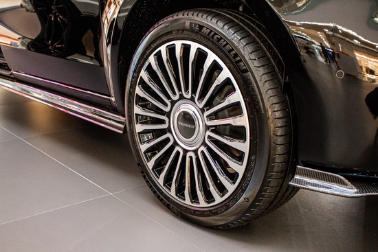 具体细节展示:隆起的前机盖、燕尾式扰流板、22英寸钻石黑锻造轮毂,及全碳式备胎罩,这是把高端与性能演绎的淋漓尽致!